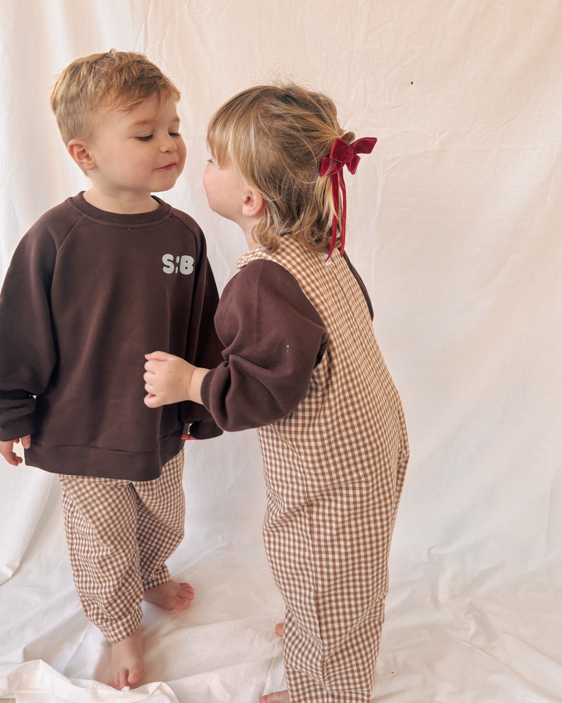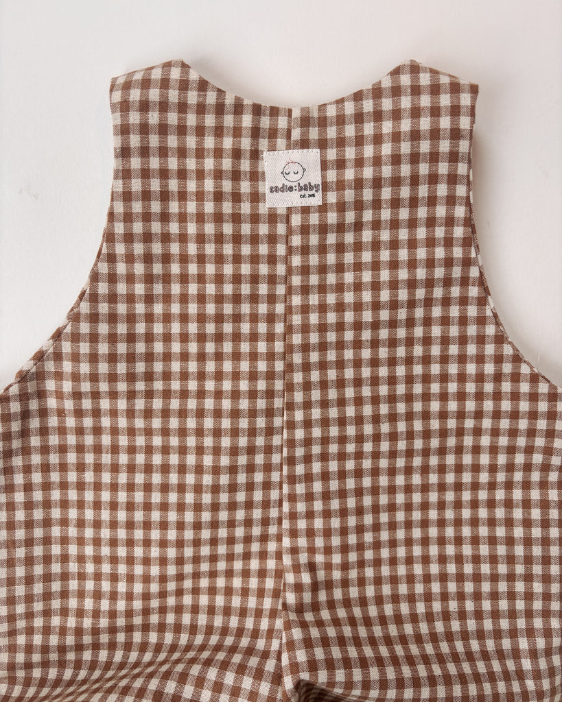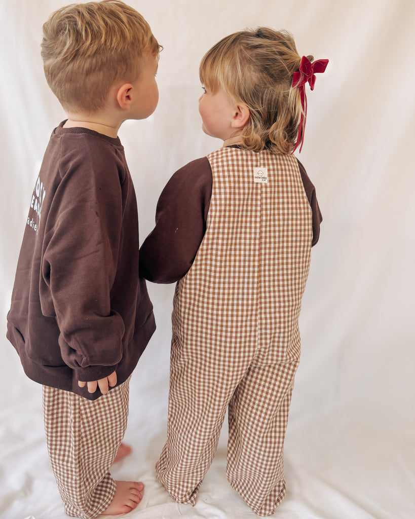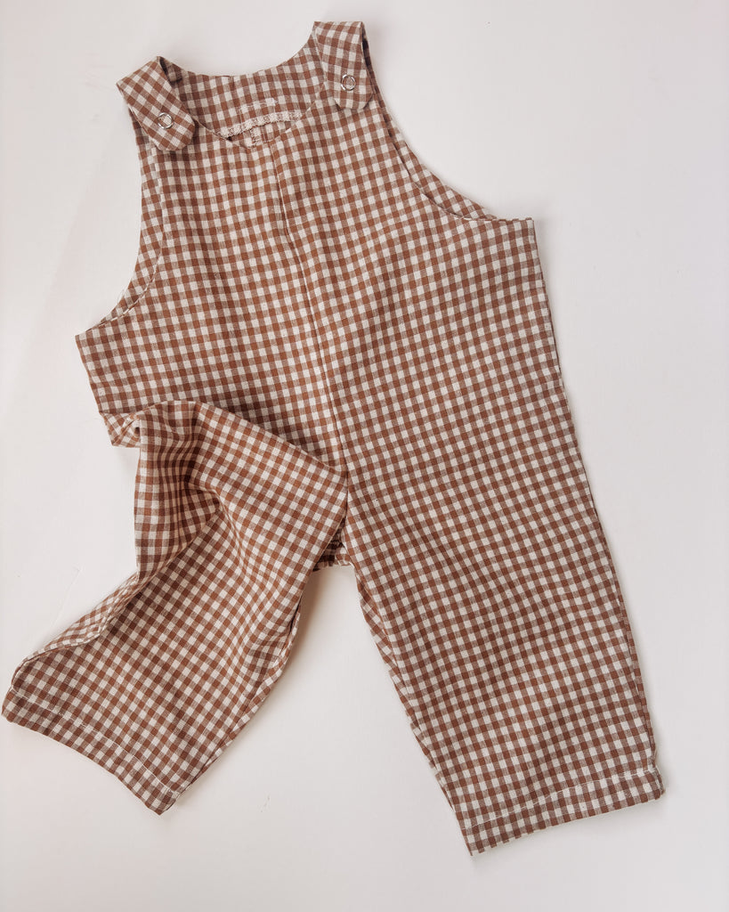 Our biscuit check dungarees have been designed and handmade exclusively for Sadie:Baby. This new fit is roomy and soft making them perfect for movement, play and growth. Made from 100% cotton, they are timeless and seasonless giving your little one maximum wear and comfort. Great for layering with cosy knits and boots over the colder months.